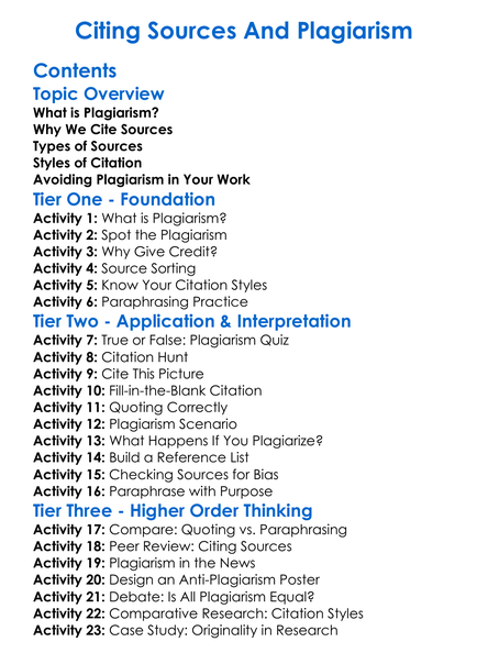 Citing Sources And Plagiarism Worksheet Activity Booklet