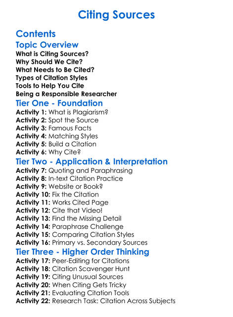 Citing Sources Worksheet Activity Booklet