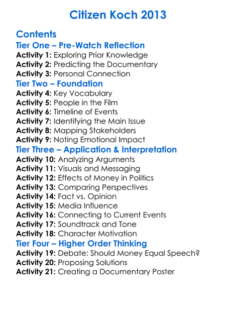 Citizen Koch 2013 Worksheet Activity Booklet