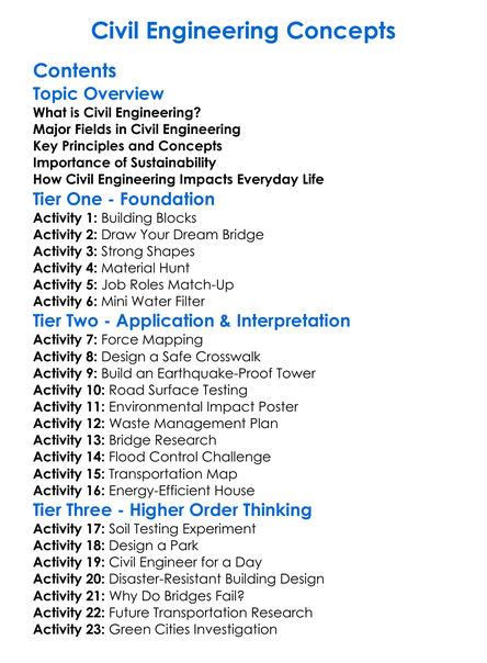 Civil Engineering Concepts Worksheet Activity Booklet
