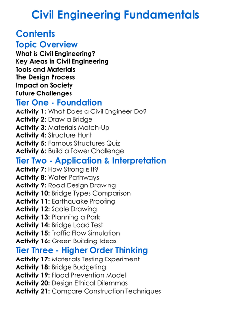 Civil Engineering Fundamentals Worksheet Activity Booklet