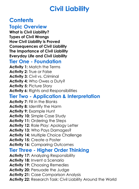 Civil Liability Worksheet Activity Booklet