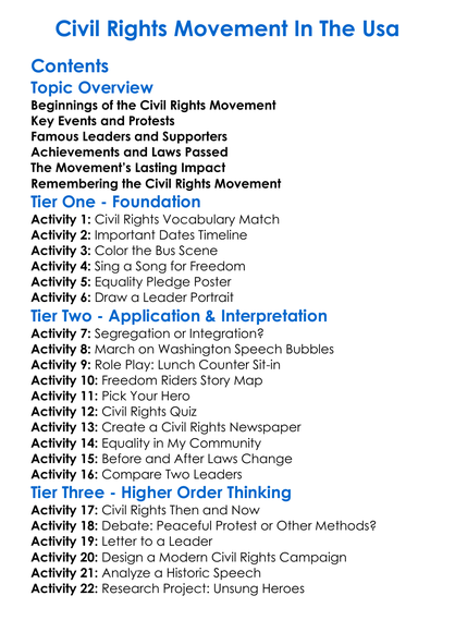 Civil Rights Movement In The Usa Worksheet Activity Booklet