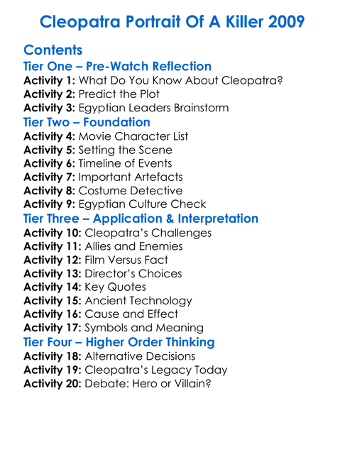 Cleopatra Portrait Of A Killer 2009 Worksheet Activity Booklet