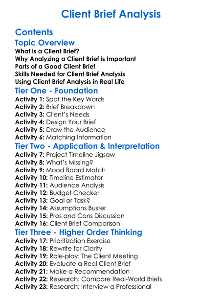 Client Brief Analysis Worksheet Activity Booklet