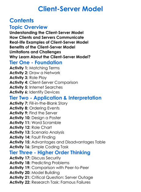 Client-Server Model Worksheet Activity Booklet
