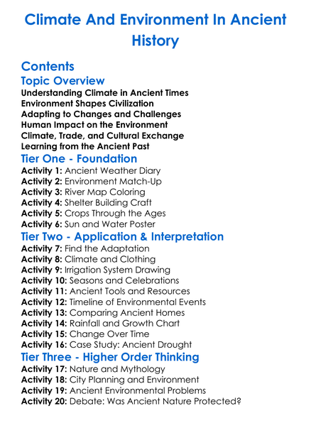 Climate And Environment In Ancient History Worksheet Activity Booklet