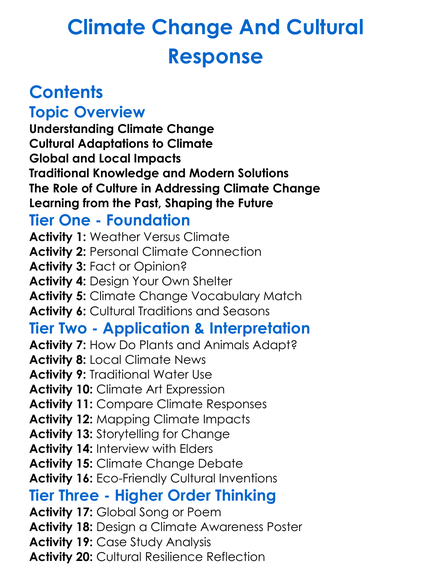 Climate Change And Cultural Response Worksheet Activity Booklet