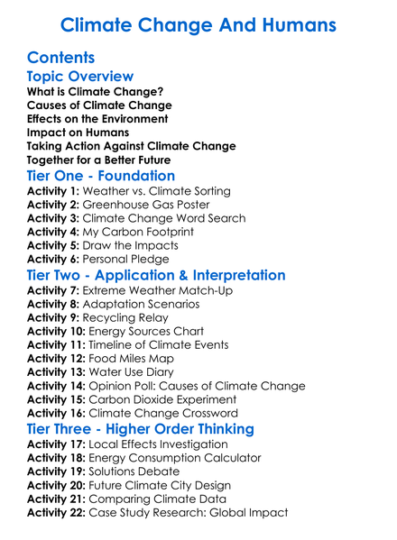 Climate Change And Humans Worksheet Activity Booklet