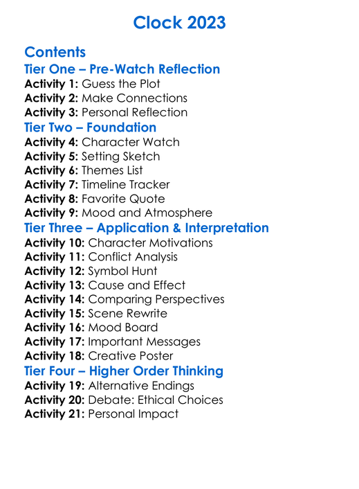 Clock 2023 Worksheet Activity Booklet