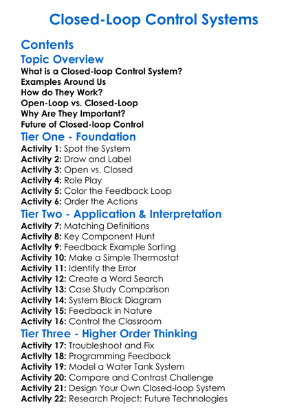 Closed-Loop Control Systems Worksheet Activity Booklet