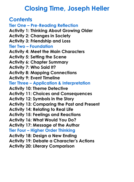 Closing Time Joseph Heller Worksheet Activity Booklet