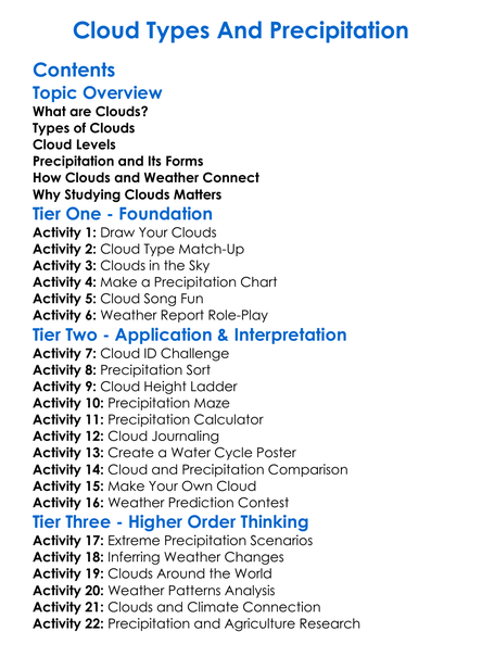 Cloud Types And Precipitation Worksheet Activity Booklet