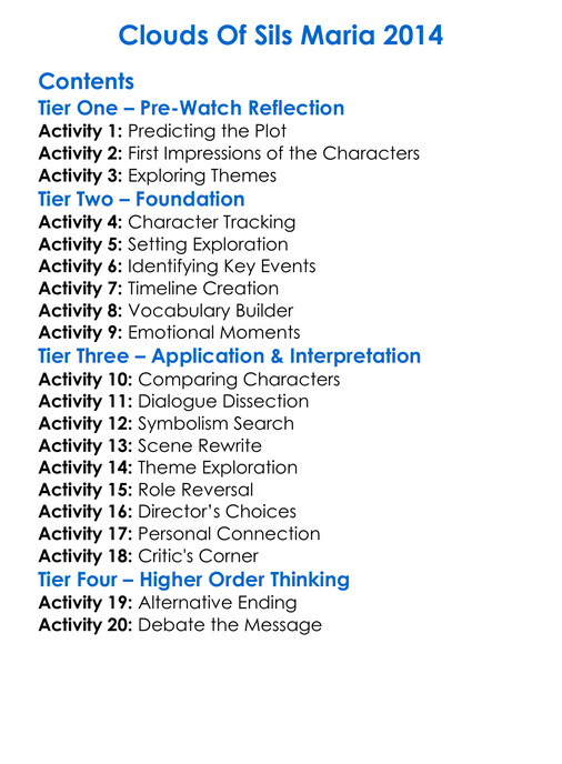 Clouds Of Sils Maria 2014 Worksheet Activity Booklet