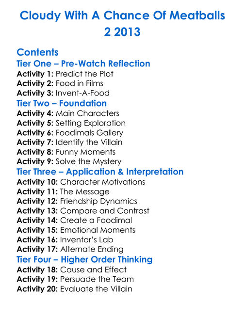 Cloudy With A Chance Of Meatballs 2 2013 Worksheet Activity Booklet