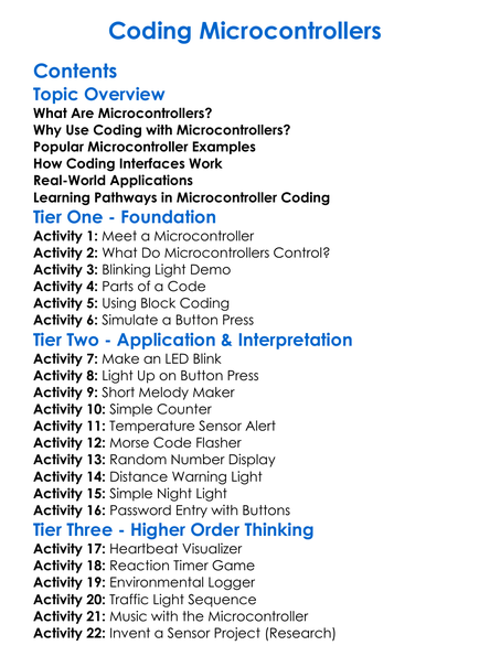 Coding Microcontrollers Worksheet Activity Booklet