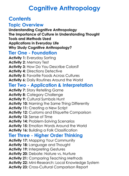 Cognitive Anthropology Worksheet Activity Booklet