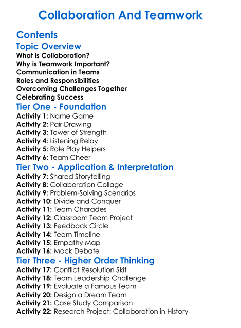 Collaboration And Teamwork Worksheet Activity Booklet