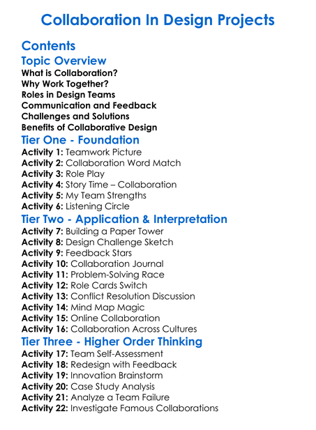 Collaboration In Design Projects Worksheet Activity Booklet