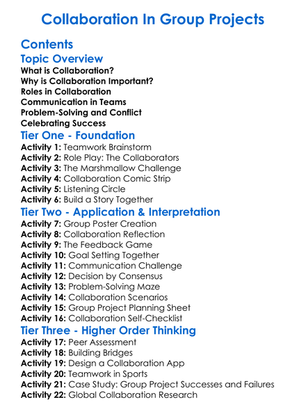 Collaboration In Group Projects Worksheet Activity Booklet