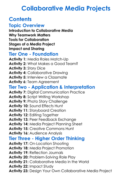Collaborative Media Projects Worksheet Activity Booklet