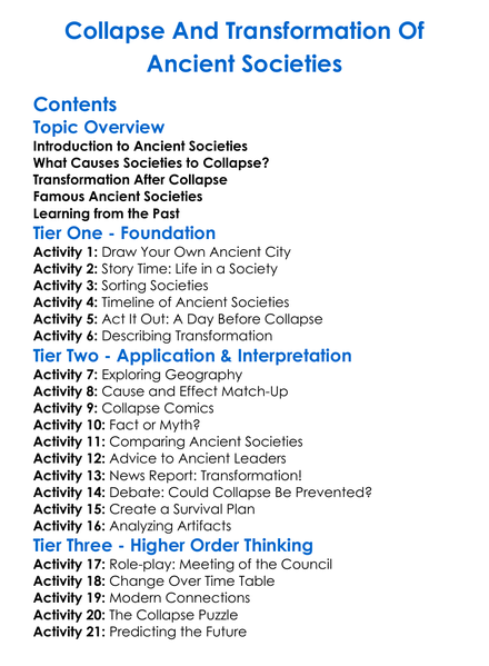 Collapse And Transformation Of Ancient Societies Worksheet Activity Booklet