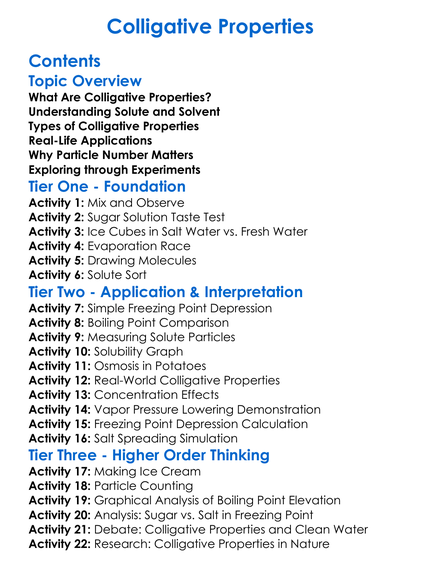 Colligative Properties Worksheet Activity Booklet