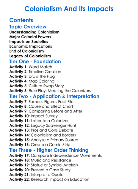 Colonialism And Its Impacts Worksheet Activity Booklet