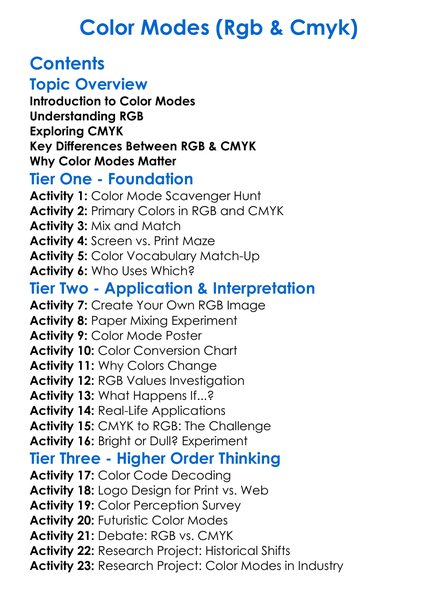 Color Modes Rgb Cmyk Worksheet Activity Booklet
