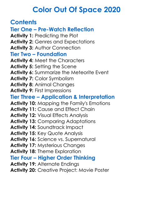 Color Out Of Space 2020 Worksheet Activity Booklet