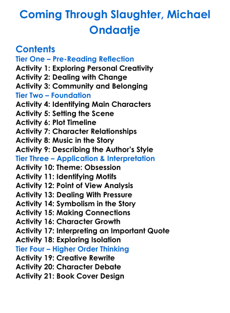 Coming Through Slaughter Michael Ondaatje Worksheet Activity Booklet