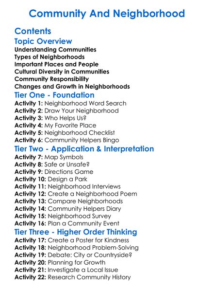 Community And Neighborhood Worksheet Activity Booklet