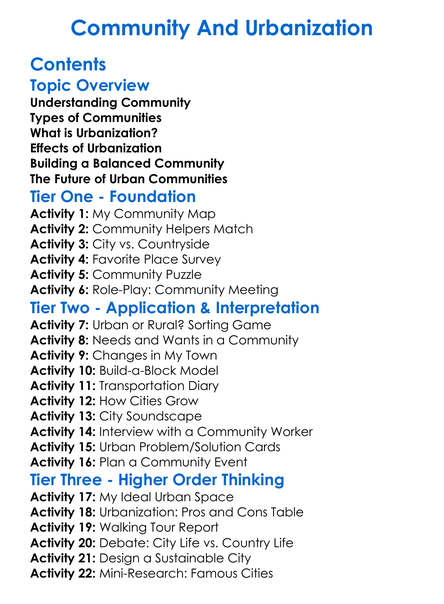 Community And Urbanization Worksheet Activity Booklet