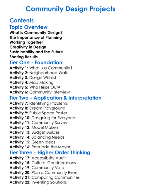 Community Design Projects Worksheet Activity Booklet