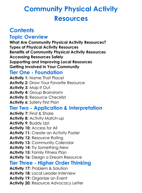 Community Physical Activity Resources Worksheet Activity Booklet