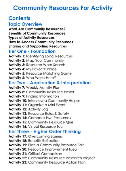 Community Resources For Activity Worksheet Activity Booklet