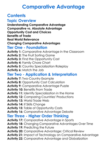 Comparative Advantage Worksheet Activity Booklet