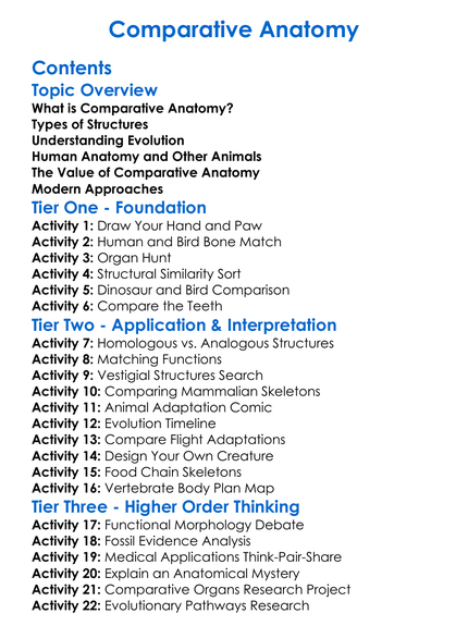 Comparative Anatomy Worksheet Activity Booklet