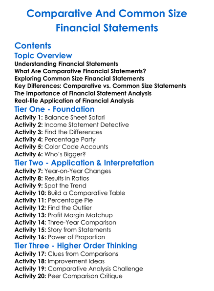 Comparative And Common Size Financial Statements Worksheet Activity Booklet