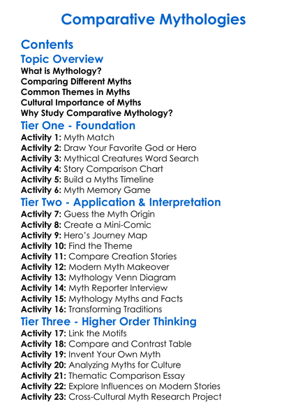 Comparative Mythologies Worksheet Activity Booklet
