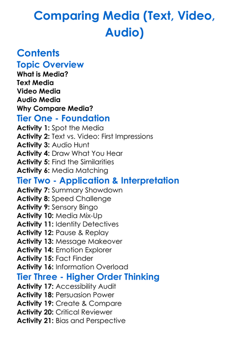 Comparing Media Text Video Audio Worksheet Activity Booklet