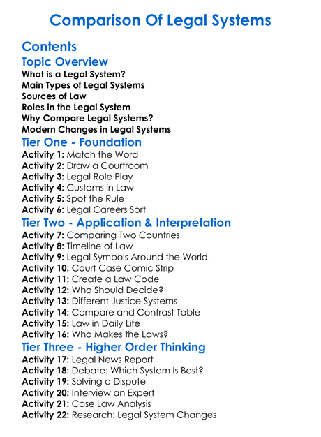 Comparison Of Legal Systems Worksheet Activity Booklet