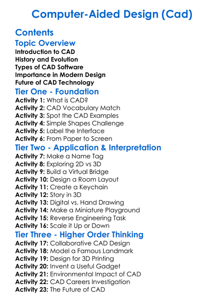 Computer-Aided Design Cad Worksheet Activity Booklet
