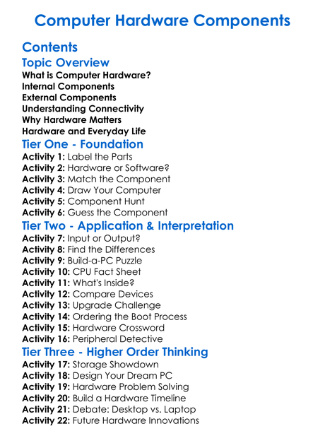Computer Hardware Components Worksheet Activity Booklet