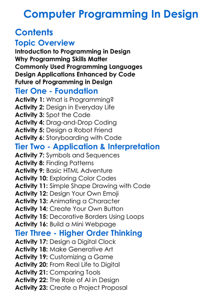 Computer Programming In Design Worksheet Activity Booklet