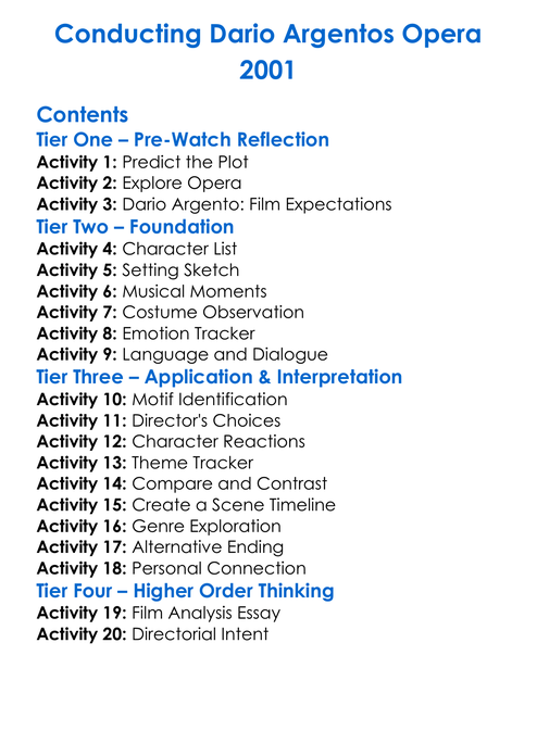 Conducting Dario Argentos Opera 2001 Worksheet Activity Booklet