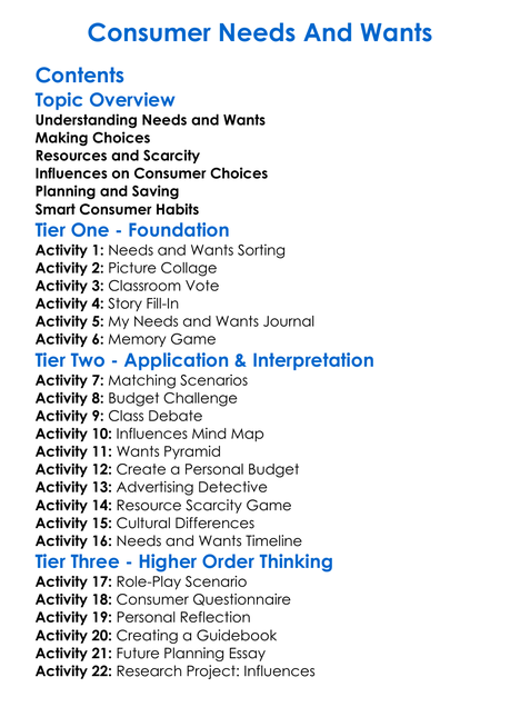 Consumer Needs And Wants Worksheet Activity Booklet