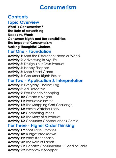 Consumerism Worksheet Activity Booklet