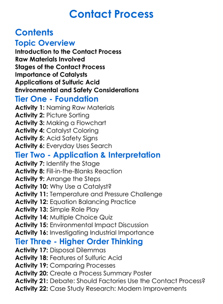 Contact Process Worksheet Activity Booklet