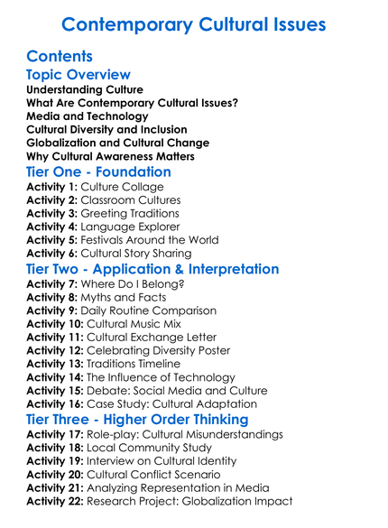 Contemporary Cultural Issues Worksheet Activity Booklet